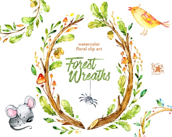 Couronnes De Foret Clipart Aquarelle Fleurs Chene Souris Etsy